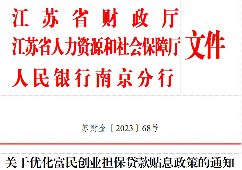 02、5月起江苏“富民创业贷”取消部分贴息
