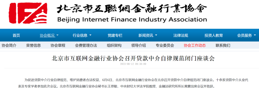 北京市互联网金融行业协会将于2023年6月6日召开贷款中介闭门座谈会议,会议将重点讨论贷款中介的自律规范及行业红线等问题。